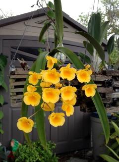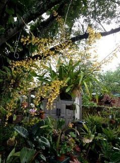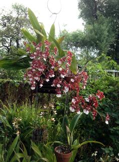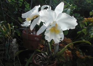 Chris lives in Tampa, Florida actually outside of the city in the county so the setting is relatively rural. He has no shelter or greenhouse for his orchids. Almost all of them are hanging and swinging in the breeze under a huge 45+ year old oak tree in the back yard. Florida is a good climate for growing so many species of orchid due to the very warm and very humid atmosphere. On average they have one freeze a year always in January. On those nights, he moves all of the orchids and some other plants into protected places such as the tool shed, utility room and/or into his house. Because almost all of his orchids hang suspended from the oak tree, close attention to watering is more important than one may think considering the annual rainfall. They get a lot of rain in Florida since he is in a sub tropical zone however Florida does have its dry months both in summer and winter. Summer dry months are the most critical for watering, making sure the plants do not go into distress due to dehydration. Hanging orchids will dry out faster than orchids on the ground in pots such as the Nuns Orchid. Watering is easy enough, he just turn the garden hose on the plants, watering done. As for feeding orchids, frankly he rarely feeds them . In spite of that they flourish. HIS collection is relatively small comprising Phalaenopsis', Laelia anceps and purparata, Encyclias, Oncidiums, Nunns, Dendrobiums, Cattleyas, Paphiopedilums, Cymbidiums including a cool growing one brought from Oakland, California, one Bulboyphyllum, and one Dgmra. Best of Growing |