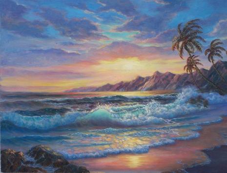 | Sunset Surf - Big Island Oil on Canvas - 20 x 24" - $685.00 SOLD |